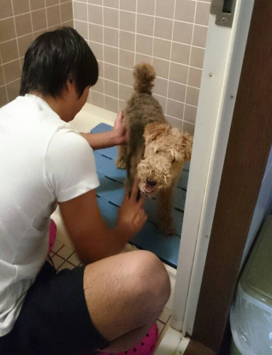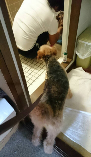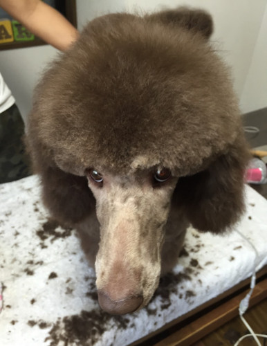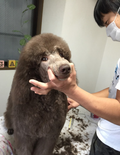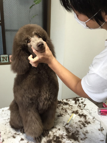 23 4月 モコモコフワフワ! 少し前の写真となってしまいましたが グルーミングにきていたプードルの子の写真です! ついついギュッと抱きしめたくなりますが、美容したてのふわっふわな体を 最初にギュッ!っと出来るのは飼い主さん一家の特権ですね! 後日、トレーニングをしている姿の写真も頂きました♪