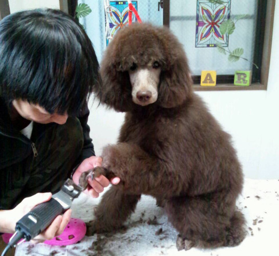 23 4月 モコモコフワフワ! 少し前の写真となってしまいましたが グルーミングにきていたプードルの子の写真です! ついついギュッと抱きしめたくなりますが、美容したてのふわっふわな体を 最初にギュッ!っと出来るのは飼い主さん一家の特権ですね! 後日、トレーニングをしている姿の写真も頂きました♪