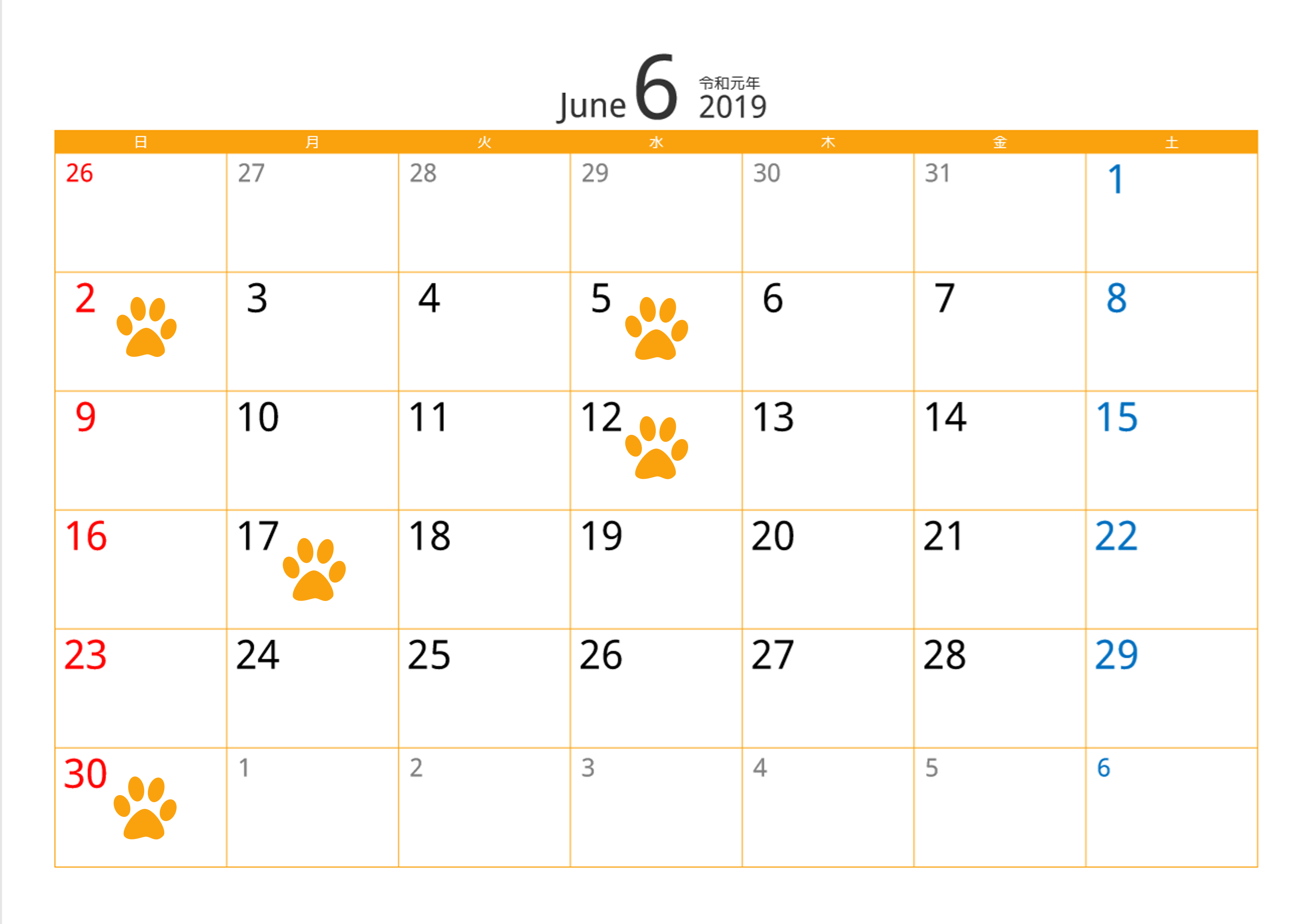 2日(日) 5日(水) 12日(水) 17日(月) 30日(日)